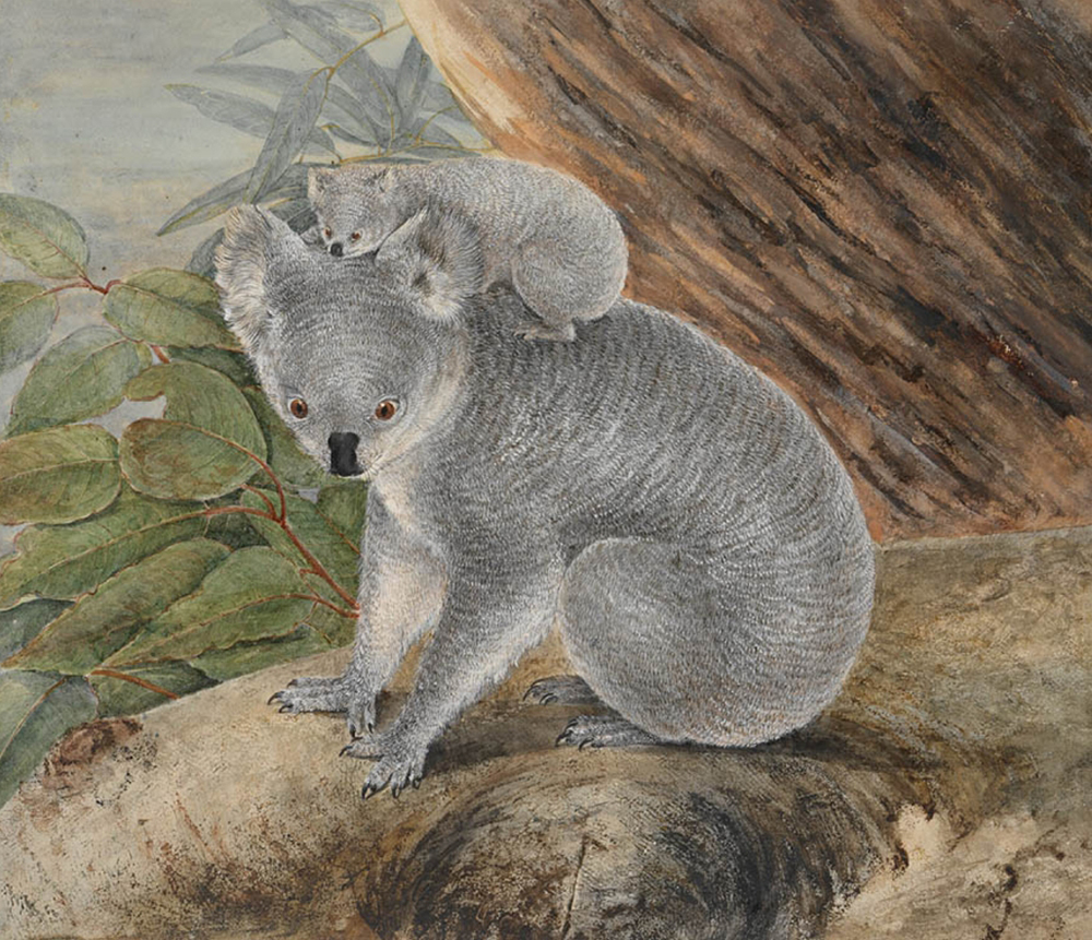 Article Hero Image Caption: <em>Koala and young</em>, 1803, by J.W. Lewin (photograph via the State Library of NSW)